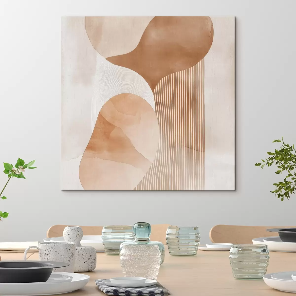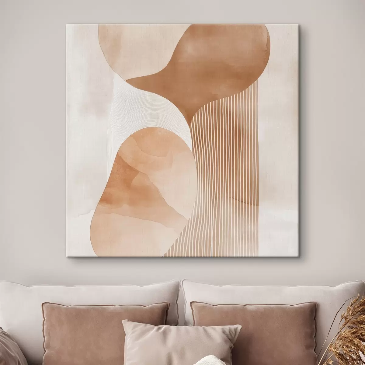 Schilderijen Decoratieve kunst in een warm beige-koraalkleurig palet met een aquareleffect s48870