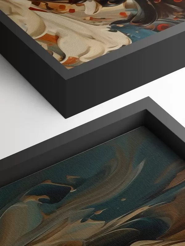 Het schilderij kan direct na ontvangst worden opgehangen. Het schilderij wordt opgespannen op een 2 cm breed houten spieraam.