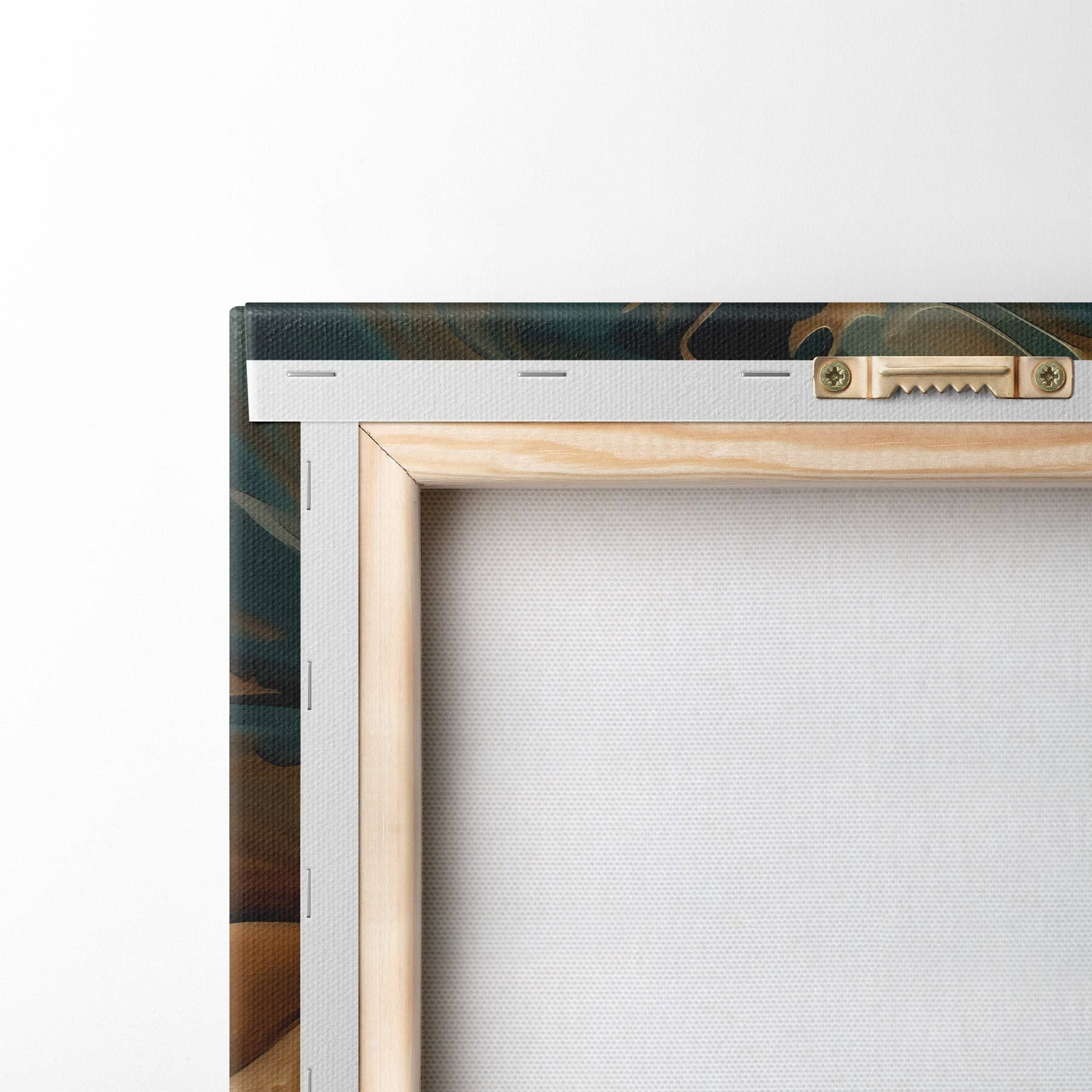Om het doek op te spannen op spielatten zonder de afbeelding te beschadigen, gebruiken we gespiegeld beeld.