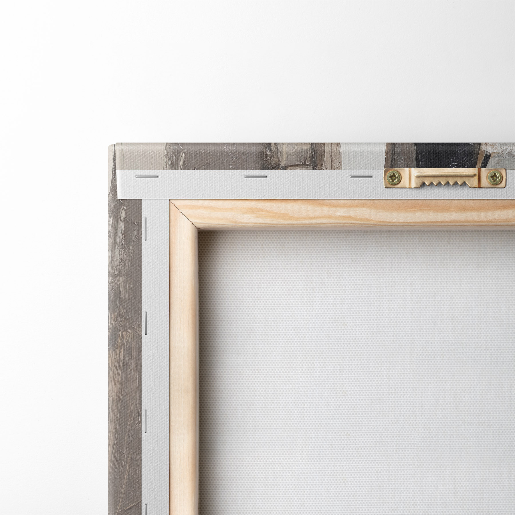 Je kunt het schilderij ophangen aan schroeven. Hiervoor leveren we bevestigingen bij onze foto's, zodat je de foto gemakkelijk kunt ophangen.