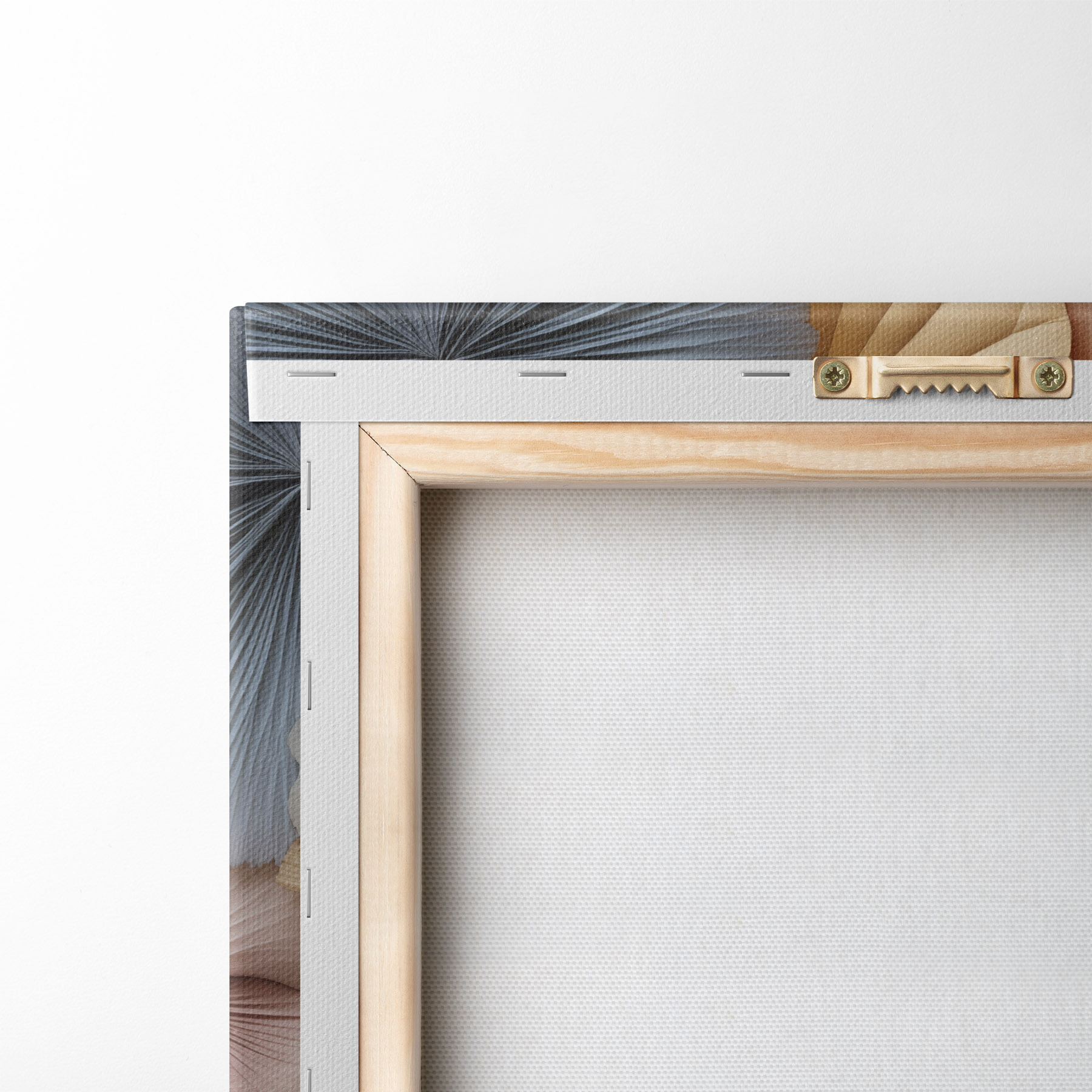 Om het doek op te spannen op spielatten zonder de afbeelding te beschadigen, gebruiken we gespiegeld beeld.